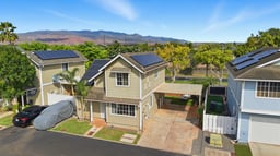 Step into The Lofts at Alii Cove in Ewa Gentry—where comfort, style, and energy efficiency meet! This beautifully maintained 2-bedroom, 2-bath home features a spacious layout with vaulted ceilings, central air conditioning, and sleek vinyl laminate flooring. The primary suite with a full ensuite bath is conveniently located on the first floor, while the second bedroom and full bath offer privacy upstairs. Enjoy the convenience of a 2-car carport plus two additional driveway spaces, along with guest parking nearby. Positioned across from a lush green open space, this home offers a peaceful setting in a thriving community. Modern upgrades include updated appliances and a powerful energy-efficient setup with 21 owned photovoltaic panels and 2-Tesla Powerwall batteries—helping you save on utilities. Located in the heart of Ewa, you're just minutes from shopping, dining, entertainment, banks, the post office, and public transportation. BONUS: This property comes with a VA assumable loan at an incredibly low 2.25% interest rate. This is an exceptional opportunity for qualified VA buyers. Don’t miss your chance to own in one of Oahu’s fastest-growing neighborhoods!